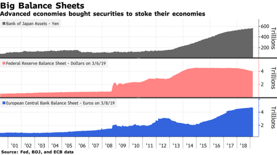 在美联储的带领下,世界上许多中央银行要么停止收紧货币政策,要么采取新的刺激措施,以缓解投资者对经济放缓的担忧。美联储主席鲍威尔表示,他和同事们将耐心等待,而欧洲央行行长德拉基已经排除了欧银今年加息的预期,并为银行提供了一批新的低息贷款。
