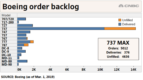全球范围内,波音还有4600架该机型飞机在订购状态。