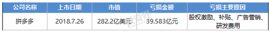 拼多多方面给出的解释是,这笔亏损包含了“三周年庆”、“双十一”、等连续大促的Q4季度,亏损额为26.409亿元。此外,拼多多还在IPO时一次性计算了员工股权激励,该笔所产生的亏损费用为107.9亿元。