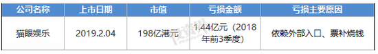 招股书上显示,2015年至2017年,猫眼分别亏损12.98亿元、5.08亿元和0.76亿元。而去年前三季度,亏损额为1.44亿元。三年亏损已超20亿!