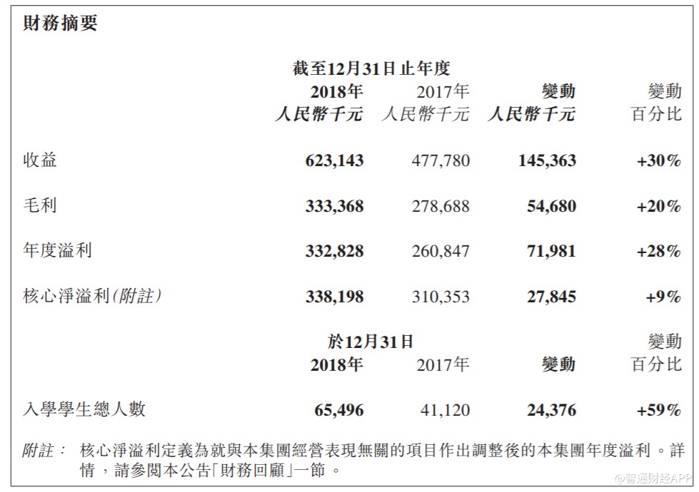 财报显示,民生教育2018年实现收益约6.23亿元人民币(单位下同),同比增长30.4%,增速较2017年的7.4%大幅加快,母公司拥有人应占溢利约3.33亿元,同比增长约28.04%。公告称,收益增长主要由于集团学生入学人数及平均学费增加所致。
