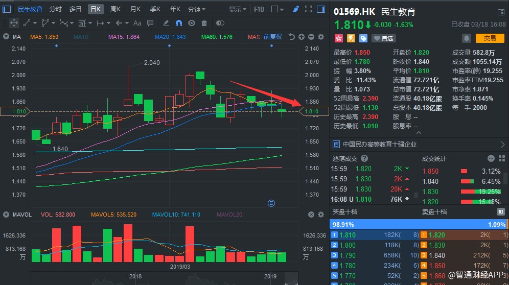 但公布2018年业绩公布后,市场对民生教育的增长潜力似乎并不满意,新收购一所本科学院的消息也未能提振公司股价,继上周五(3月15日)平收后,3月18日该股跌掉1.63%。