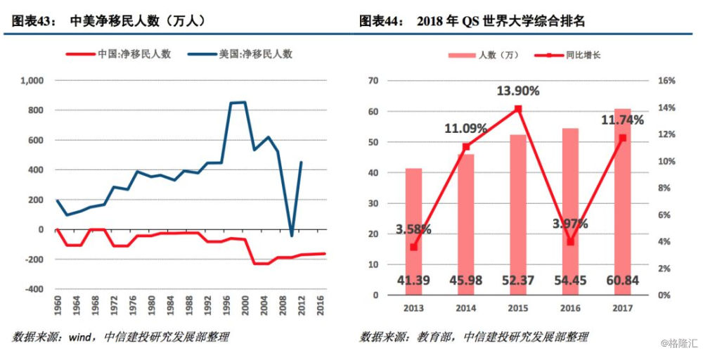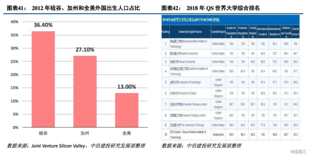正确的人力资本安排驱动了科技创新发展。科技创新归根结底是人的创造活动。美国科创人才的来源主要有本国高校和移民两大供给源头。高端技术移民的教育水平远超过美国平均,美国拥有全球最优秀的大学,是美国科技发展的重要支持。灵活的人才流动性是降低初创公司的风险。初创公司通过股票期权等方式持续激励员工,做好了人力资本的驱动。