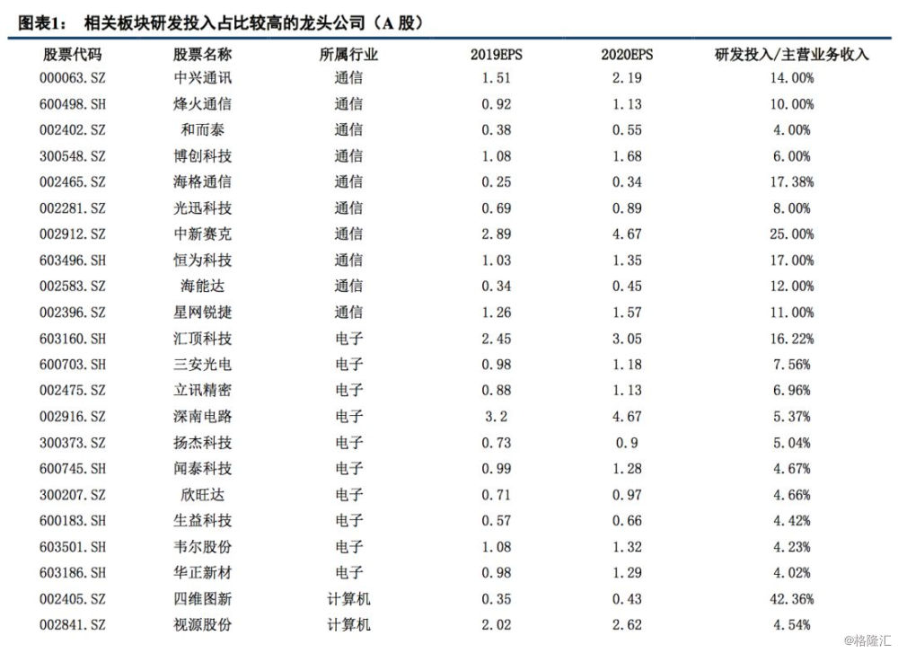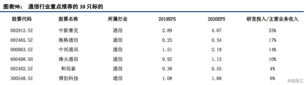 我们建议重点关注拥有核心技术的公司,尤其是拥有核心芯片能力的公司,例如面向5G民用方向的,如无线主设备商、烽火通信、光迅科技、博创科技,面向物联网芯片及传感器领域的,如东软载波、汉威科技,面向北斗与军工信息化领域的,如海格通信、振芯科技与和而泰。