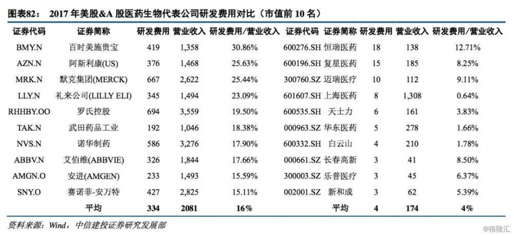 医药行业:医药行业的差距是最为明显的。中国医药企业研发投入显著低于美国。创新药的审批、医疗方法、医疗器械等每个领域都有最为明显的差距。中国有望在创新器械、创新药两个方面逐步学习和积累。