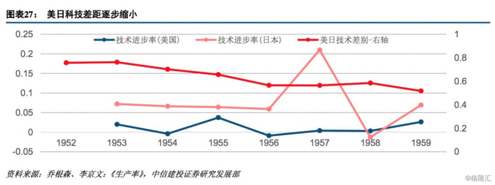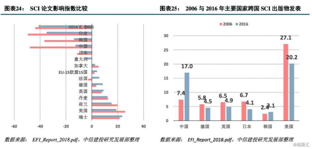 ③ 信息和通信技术等科技创新行业溢出效应最为明显,是其它技术创新的2倍,而中国在这方面明显低于美国。