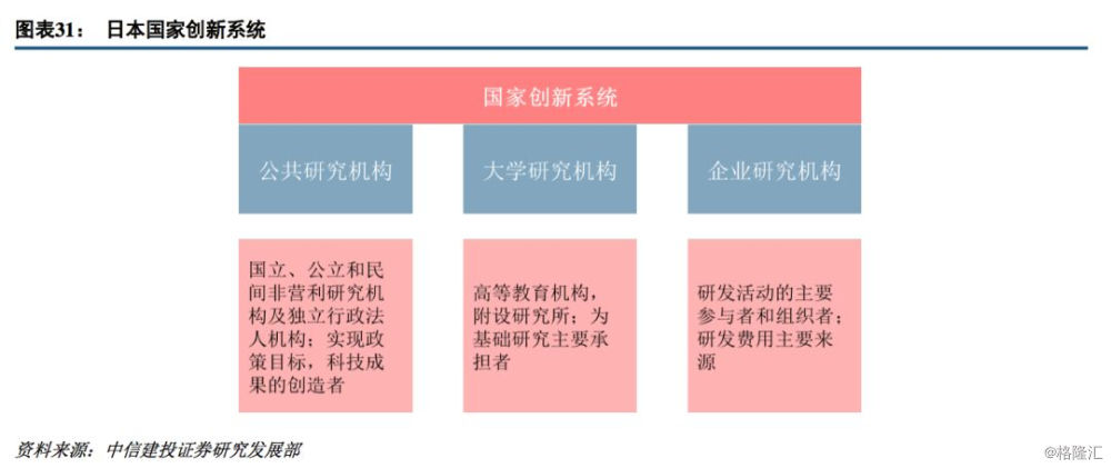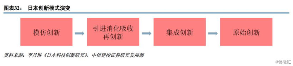 日本在二战之后也采用政府支持的方式引进先进技术,不断的通过科技投入、人才培养的方式奠定了日本科技创新的基础。通过研发体制改革、官产学体制改革、教育体制改革、促进地区科技振兴等方式,帮助日本走过了模仿创新、引进再创新、集成创新和原始创新四个阶段。日本实现了从经济沙漠到科技强国的转变。