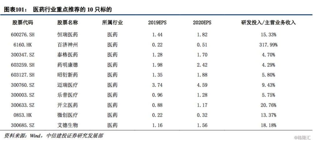 ① 创新药:恒瑞医药、贝达药业、康弘药业、安科生物等;