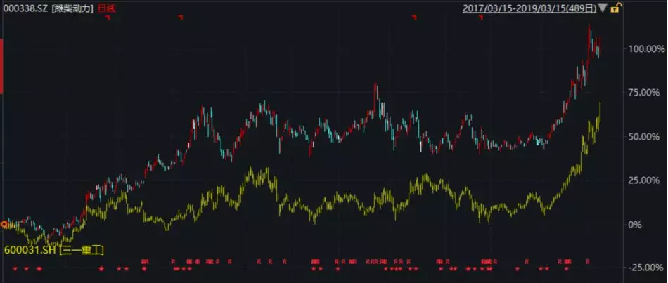 笔者并不是想说明三一被高估,而是觉得潍柴被低估。2019年3月4日以来,三一重工加速上涨,潍柴跑输三一近10%。在工业跑道上,潍柴很可能接力三一,成为下一个千亿市值公司。