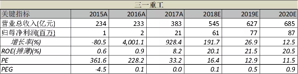 1)三一未来两年业绩增速更高,市场参考PEG给予估值;