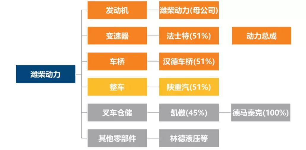 (1)潍柴拥有重卡产业链黄金卡位:在重卡领域,潍柴拥有重卡发动机、变速箱、车桥构成的动力总成,以及控股陕重汽带来重卡全国销售前四的销量。当然,市场当前最为关注的仍是潍柴的重卡主业。