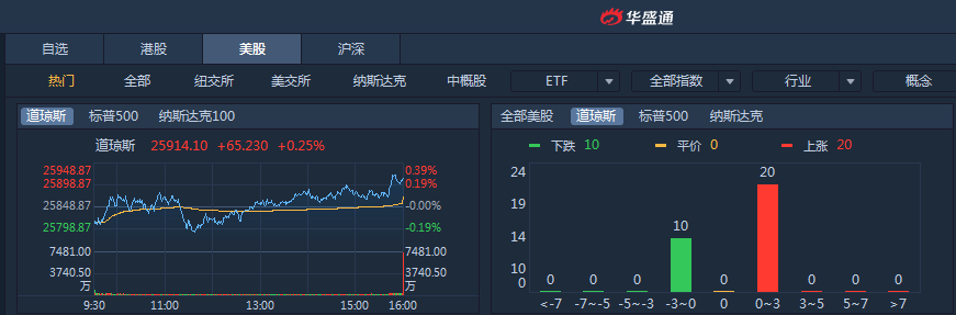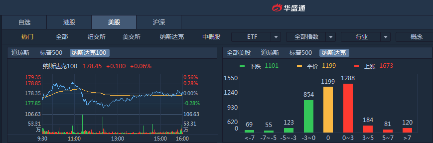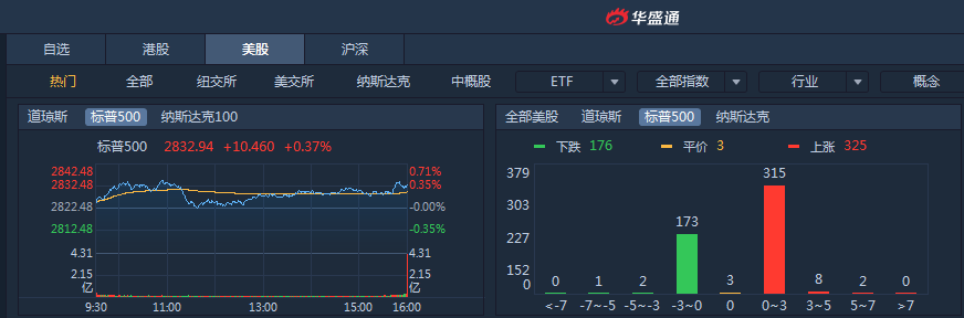 周一,美股能源股和金融股提振市场,三大指数均收涨,标普、纳指创逾五个月收盘新高,标普500涨幅0.37%,道指涨幅0.25%,纳指涨幅0.34%。