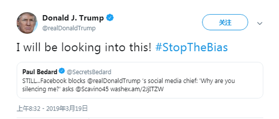 特朗普和其他保守派人士一再抱怨,这些大型科技平台对他们不公平。周二特朗普在Twitter上称将调查Facebook的偏见问题。