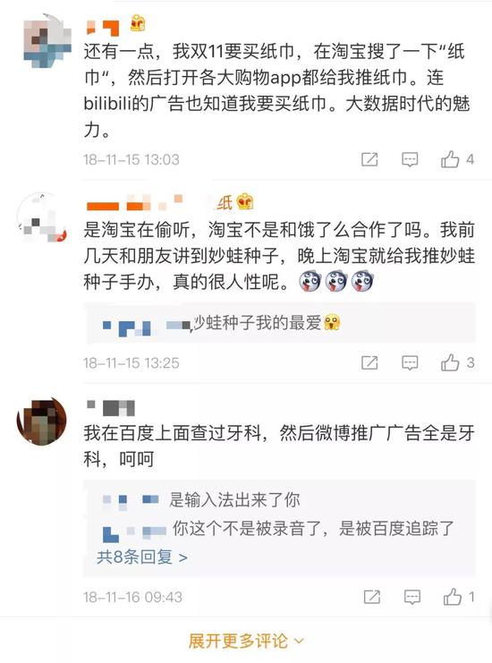 12月15日,燃玉将自己遇到的情况第一时间发布在了微博中。根据微博后的154条评论来看,与燃玉有类似经历怀疑App“偷听”的人数占六分之一。