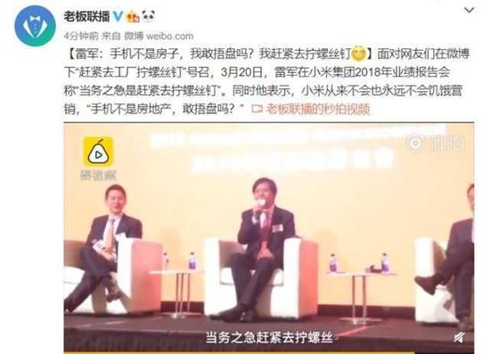 据老板联播消息,在今日的小米集团2018年业绩报告会上,雷军谈到了网友调侃最多的“拧螺丝”一事。