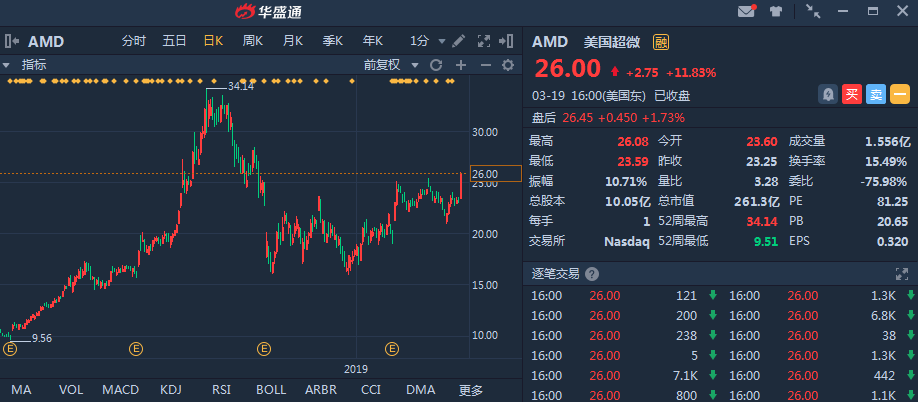 市场研究公司IDC的分析师表示,谷歌有机会彻底颠覆视频游戏行业。2018年该行业创造了1360亿美元营收,并正以每年15%的速度增长。最重要的是,AMD首席执行官苏丽萨出席的发布会上宣布,AMD将为Stadia的图形渲染提供动力,包括服务器硬件和专门定制的GPU。受消息影响,昨日公司股价盘中走高,收盘大涨11.83%,盘后涨近2%。