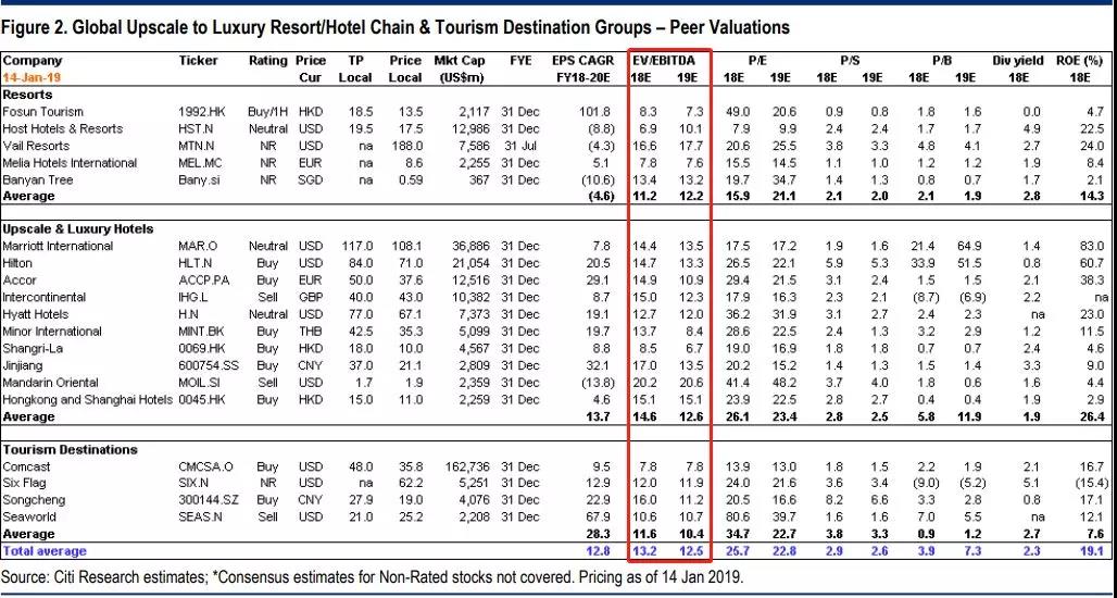 即使以港股酒店股作为参考,大酒店(0045.HK)的EV/EBITDA约为15倍(美林推算其合理估值时给予其酒店营运部份13倍),而即使缺乏增长性的香格里拉亚洲(0069.HK)亦能达到10估以上。另外以同样经营度假村的悦榕庄作参考,其估值约为13倍。