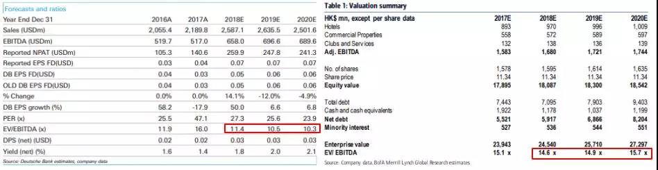 图片来源:德银 - 香格里拉亚洲估值(左),美林 - 大酒店估值(右)