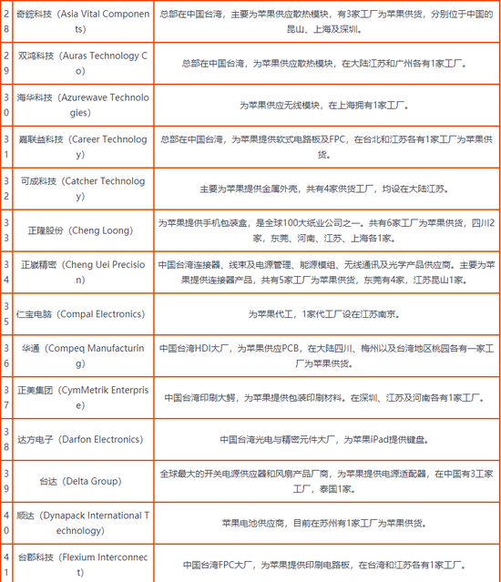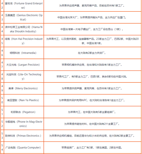 28家供应链出局的公司分别是:三星、飞利浦、康舒科技、海华科技、BumchunprecisionCo.Ltd、百老汇工业集团、litecomCo.Ltd,宜莱特(显示材料)、伊顿公司、富右鸿、古河电气工业株式会社、捷德(德国SIM卡制造商)、喜星电子、揖斐电、Invensense、LateralSolutionsPte.Ltd、凌特公司等公司。