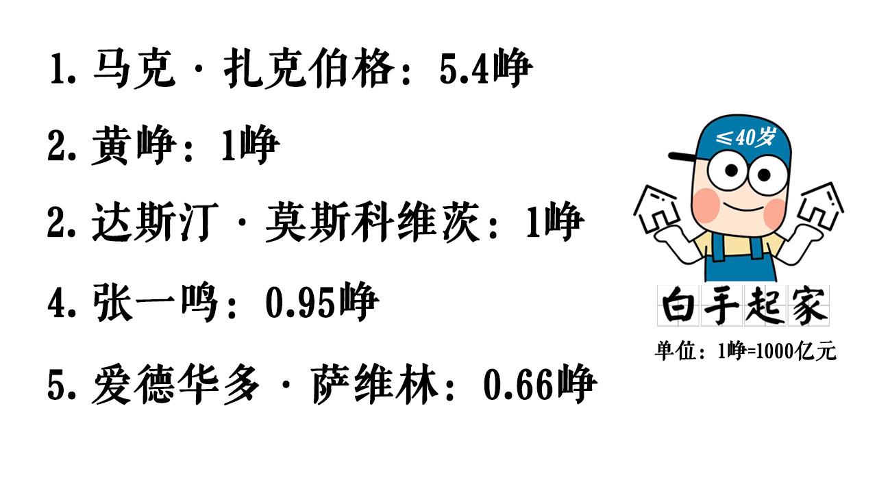 | 1 | 马克·扎克伯格 | 5400 | 34 | 美国 | |