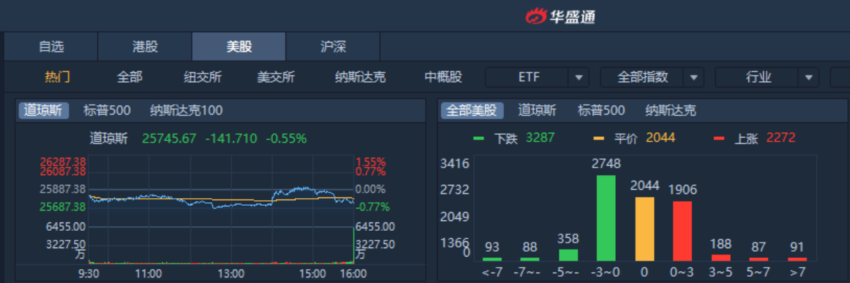 周三,美联储利率决议释放强烈鸽派信号,美股低开后集体转涨,但截至收盘三大指数涨跌不一,标普500下跌0.29%,报2824.23点;道指跌0.55%,报25745.67点;纳指微涨0.07%,报7728.97点。