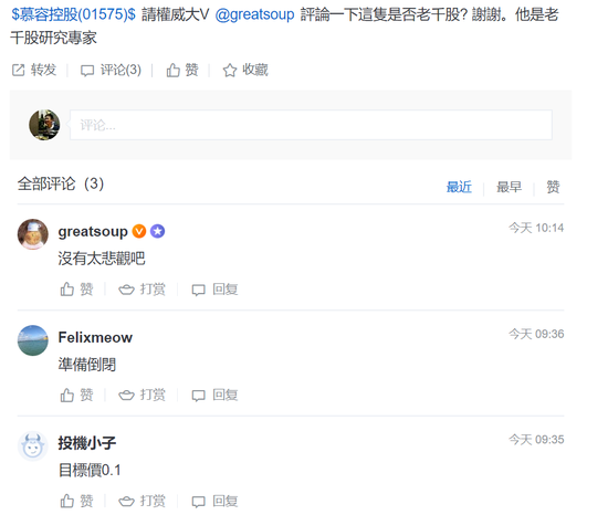 事情一出,网友们纷纷发出惊人言论,有人质疑这只股票为老千股,只值0.1港元。当然这一切都源于公司在暴跌之后并未发出任何声音,甚至有股民表示股东已经潜逃,准备清盘。