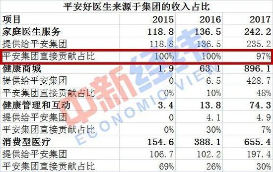 在招股书中可以看到,平安好医生所谓家庭医生服务(在线咨询)几乎完全是由平安集团所采购,在发展的前两年,集团的支持甚至起到绝对性的主导作用。
