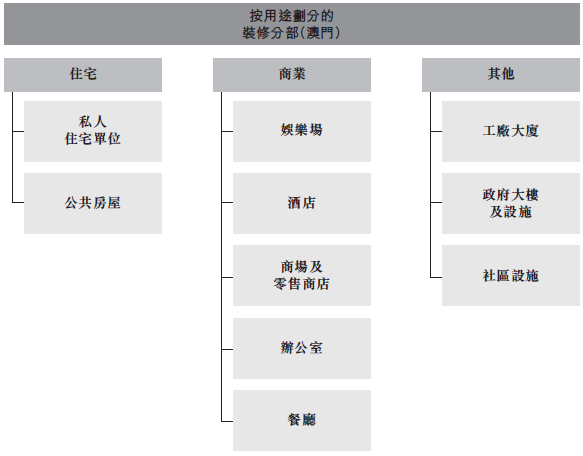 装修市场主要分为商业市场,服务对象主要为娱乐场、酒店等;非商业市场,主要为住宅单位。行业进入门槛较高,需要大量资金以及相关许可,尤其是涉及众多工程,项目管理经验特别重要。