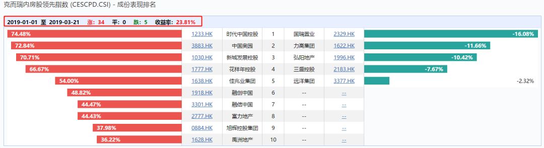 指数跟踪的39个内房成分股中,有34家上涨,头三名涨幅均超过7成,股价创出新高,仅有5家下跌,最大跌幅也不过是16.08%。