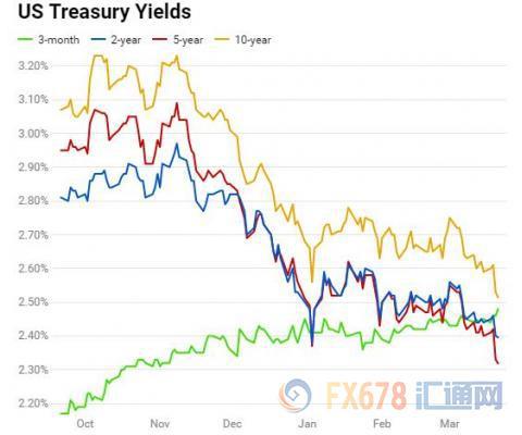 3个月与10年期美债收益率差收窄至2007年8月以来最窄水准,黄金避险需求或上升