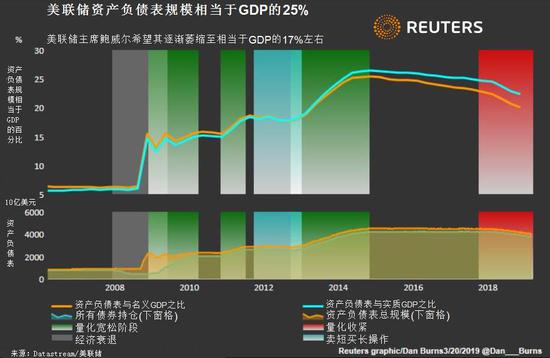 美联储资产负债表在峰值期相当于美国经济年产出的25%左右,而危机前的比率为6%左右。