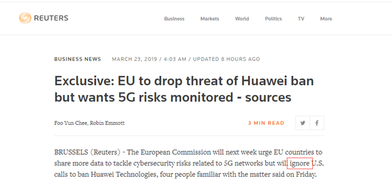 但报道还称,欧委会不会明确要求禁止华为,将交由欧盟各国基于国家安全来做出相应决定。