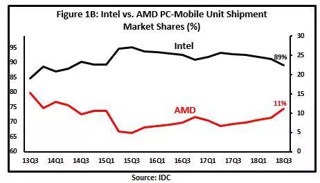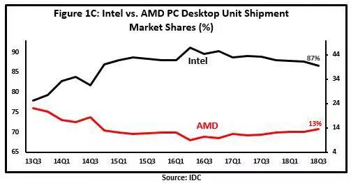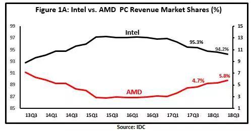 换句话说,英特尔每增加1%的收入,就有可能失去10%的市场份额,而AMD的股价将保持不变。有足够的CPU空间让英特尔和AMD高兴。