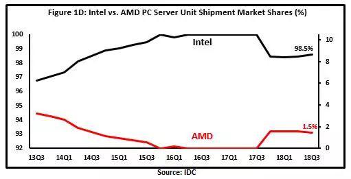 应该公平地指出,尽管英特尔在过去两年中失去了AMD的市场份额,但其规模还不显著(图1A-1E)。众所周知,服务器市场发展缓慢,用苏利莎博士自己的话说,“服务器的市场份额需要三代人的努力和时间”,英特尔仍然是这个领域的明显领导者。AMD需要更多的时间,在一个具有竞争力的定价点上,采用性能明显更好的技术,才能将市场份额提高到两位数。