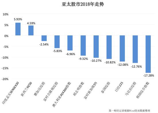 然而,印度股市却成为亚太股市中最神奇的存在。据Wind资讯数据,2018年,印度两大股指之一的印度孟买30指数全年上涨5.93%,为亚太表现最好的股市,并为唯一两个录得全年上涨的亚太股市之一。另一个录得上涨的新西兰股市全年上涨4.59%。