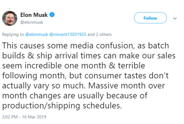 3月16日,马斯克发推文对欧洲和中国市场第一季度电动车出货量可能低于市场预期给出了解释,他把问题归咎于物流问题。