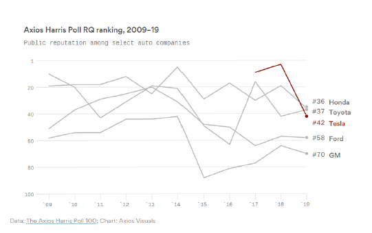 (配图22:特斯拉在汽车公司中的声誉排名骤降)