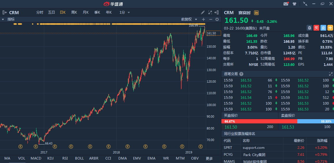 美联储暂缓加息,美国债利率倒挂,经济衰退的阴云笼罩市场,上周五美股大跌,截至收盘,云服务公司Saleforce(赛富时,CRM)凭借出色业绩增长,股价年内涨幅近18%,大幅超过同期标普500的表现。