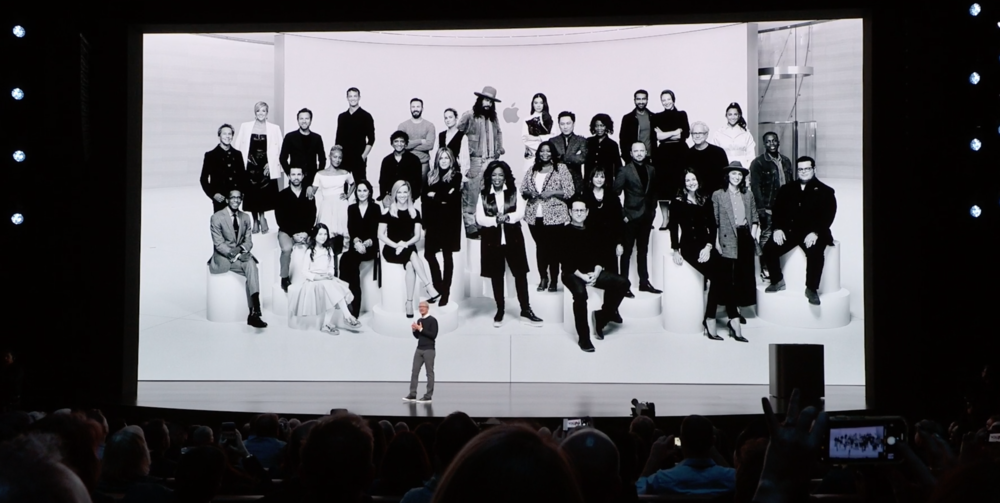 苹果把 Apple TV 的功能部分放在了发布会最后,对于美国区用户来说,这部分内容确实最具有吸引力,苹果用无数明星组成的自制剧阵容,推出了 Apple TV+ 服务。