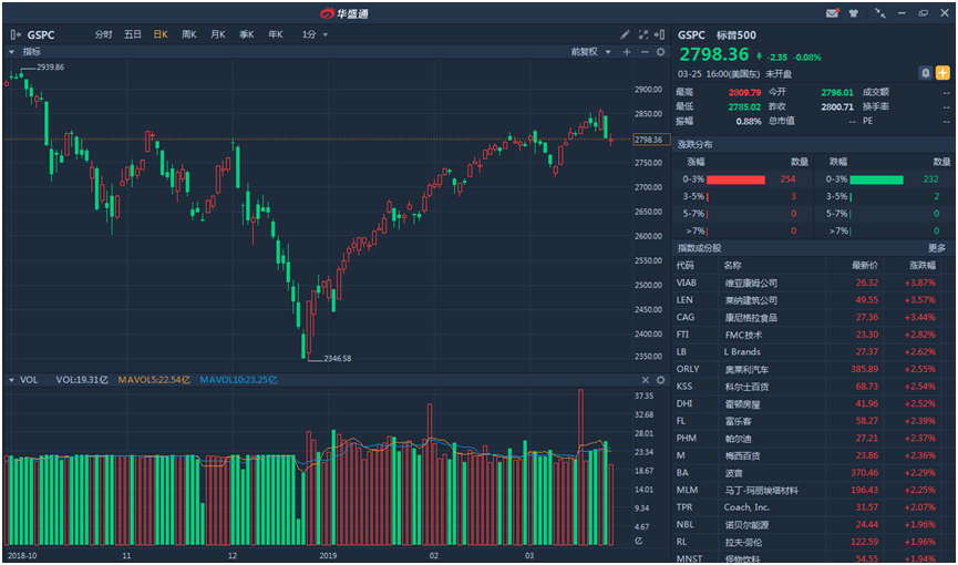 而上周欧美核心经济PMI数据均低于预期,市场对全球经济失速担忧加剧,3月期美债和10年期美债收益率倒挂,上周五美股大跌,标普500跌幅创年初以来最大单日跌幅。