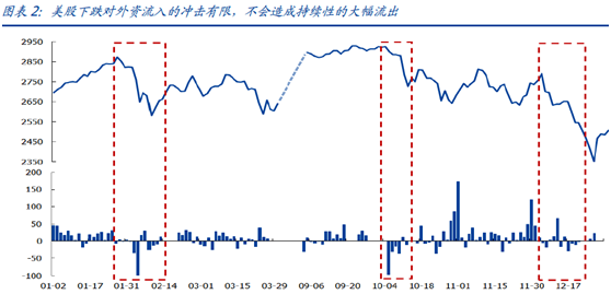 但是,美股下跌对外资流入的冲击有限,不会造成持续性的大幅流出。即使去年2月、10月两次美股大跌,外资也仅仅在几个交易日内出现大幅流出。因此,本次外次流出也是数个交易日或最多一两周的短期行为,很快会再回来。