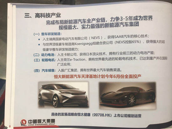 新浪财经讯 恒大今日召开业绩发布会,恒大表示:已经完成布局新能源全产业链,力争3-5年成为世界规模最大,实力最强的新能源汽车集团。