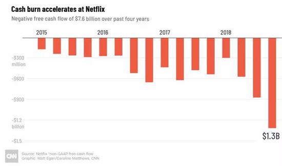 虽然这种技术是革命性的,但它很容易被竞争对手复制。Netflix很聪明,意识到这个产品可以被内容制作商复制。因此,Netflix在6年前就开始投资于自己的内容,因为它知道,在某种程度上,曾经为Netflix提供内容的业务合作伙伴会把自己的内容撤下,建立自己的流媒体平台。Netflix的预测完全正确;然而,Netflix甚至可能没有预测到随之而来的竞争规模。包括迪斯尼(NYSE:DIS)在内的多家公司已经从Netflix的平台上删除了一些内容,而其他许多公司也有望效仿。为了在其平台上保持充足的内容,Netflix加快了开发自己的内容的支出,而在过去一年里,Netflix的烧钱速度刚刚有所加快。