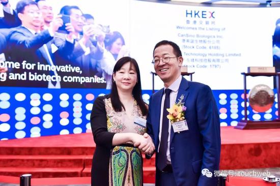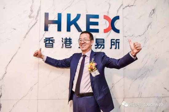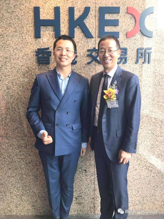 雷帝触网创始人雷建平与俞敏洪在港交所合影