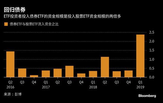 彭博汇编的数据显示,尽管标准普尔500指数上涨12%,但这些ETF投资者仍对股市敬而远之,并向固定收益ETF投入330亿美元。数据显示,这一数字是第一季度截至3月27日股票ETF吸收的150亿美元资金的两倍多,并且二者之比也达到三年来最大。