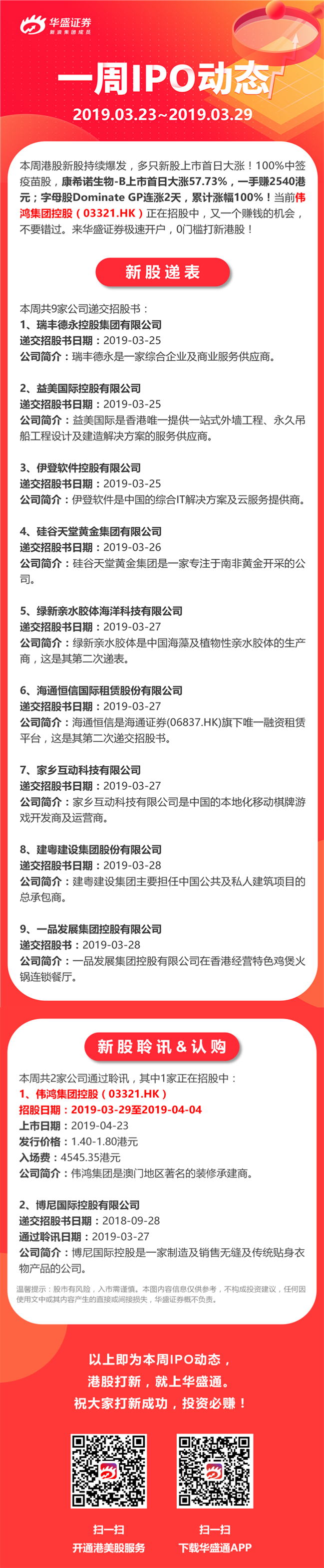 一周IPO动态 | 伟鸿集团控股正在招股中