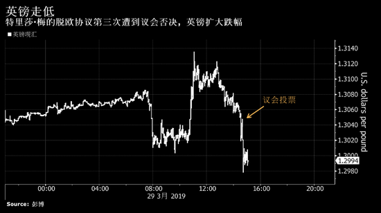 新浪美股讯 英镑逆转涨势,跌破1.30美元至盘中新低。此前英国议会再次投票反对特里莎·梅的脱欧协议。