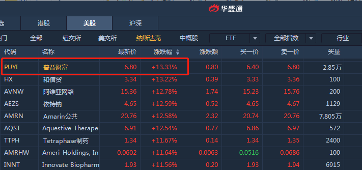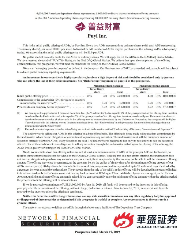由华盛证券独家承销的新兴中产财富管理龙头普益财富(PUYI)于昨晚(3月29日)正式登陆纳斯达克。 开盘即受到资金热捧,一度涨至7.75美元,较发行价6美元涨幅高达29.2%。意味着即使以最低认购数量100股计算,此前参与华盛认购活动的投资者,在此价格成交收益将达到175美金,折合人民币1175元!
