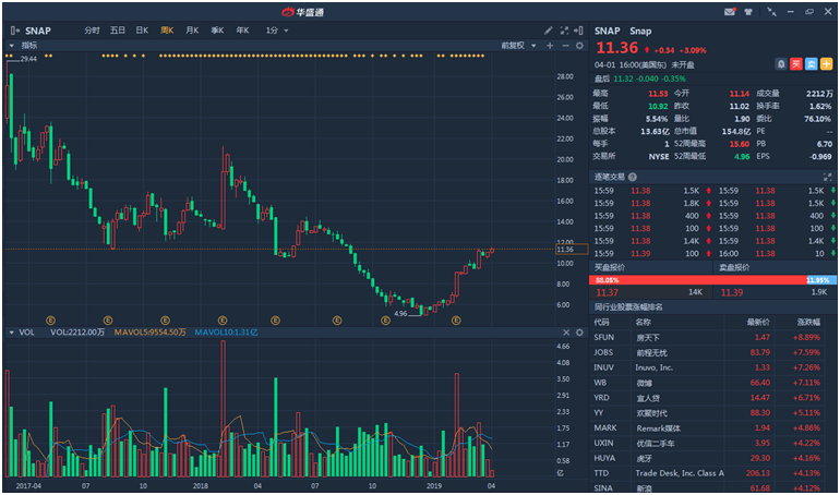 此前社交软件Snapchat上市时,IPO定价为17美元,开盘价为24美元,当时在创造26.05美元高点之后收盘回落至24.48美元;在第二天之后公司股价飙升至29.44美元历史新高之后,就一路下滑,从此再也没有上去过。