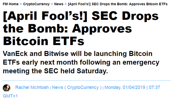 周二,比特币突破5000美元大关,创下今年最高水平,一些人将此归咎于旨在根据新闻进行买卖的算法交易。一些人猜测,在金融新闻网站Finance Magnates在愚人节发表了那篇概述监管机构周末召开的“紧急会议”以批准一只比特币ETF的“新闻”后,机器人引发了一场购买狂潮。